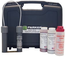 Parker PM-50A is used to identify ferromagnetic materials on the surface or near-surface via magnetizing a test-object, creating a magnetic field. If cracks or holes exist, the field would leak through it, revealing vulnerabilities.